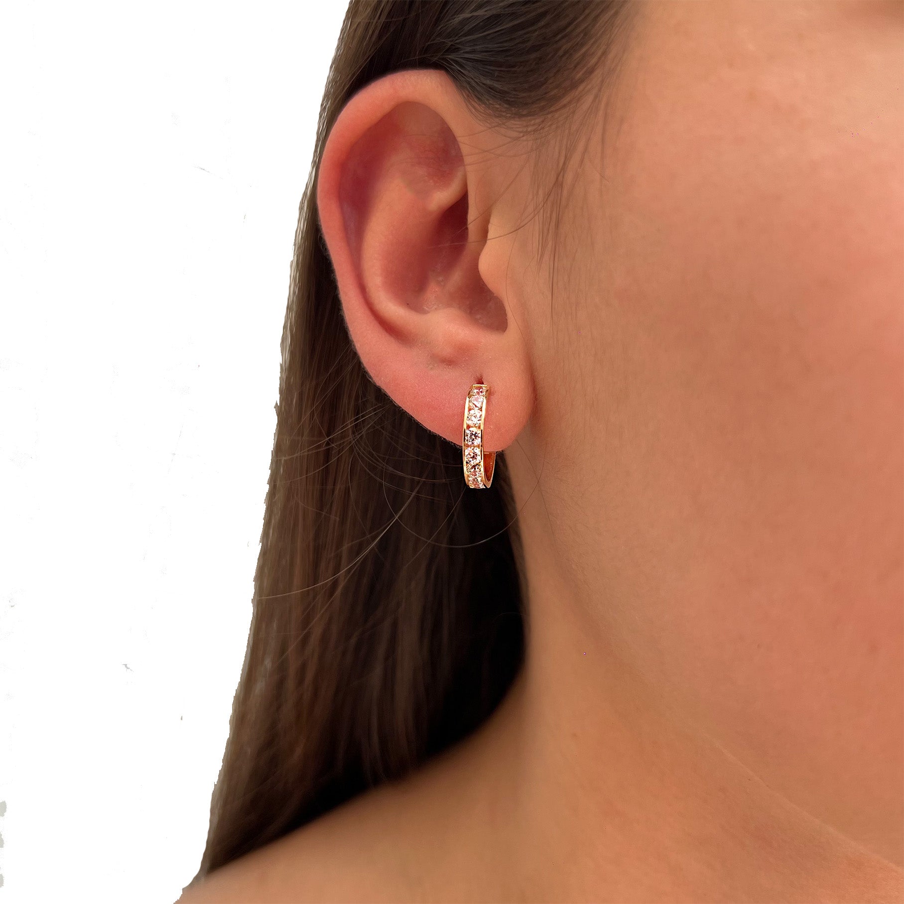 ARETES ORO 14 KILATES HUGGIES DOBLE VISTA MEDIANOS