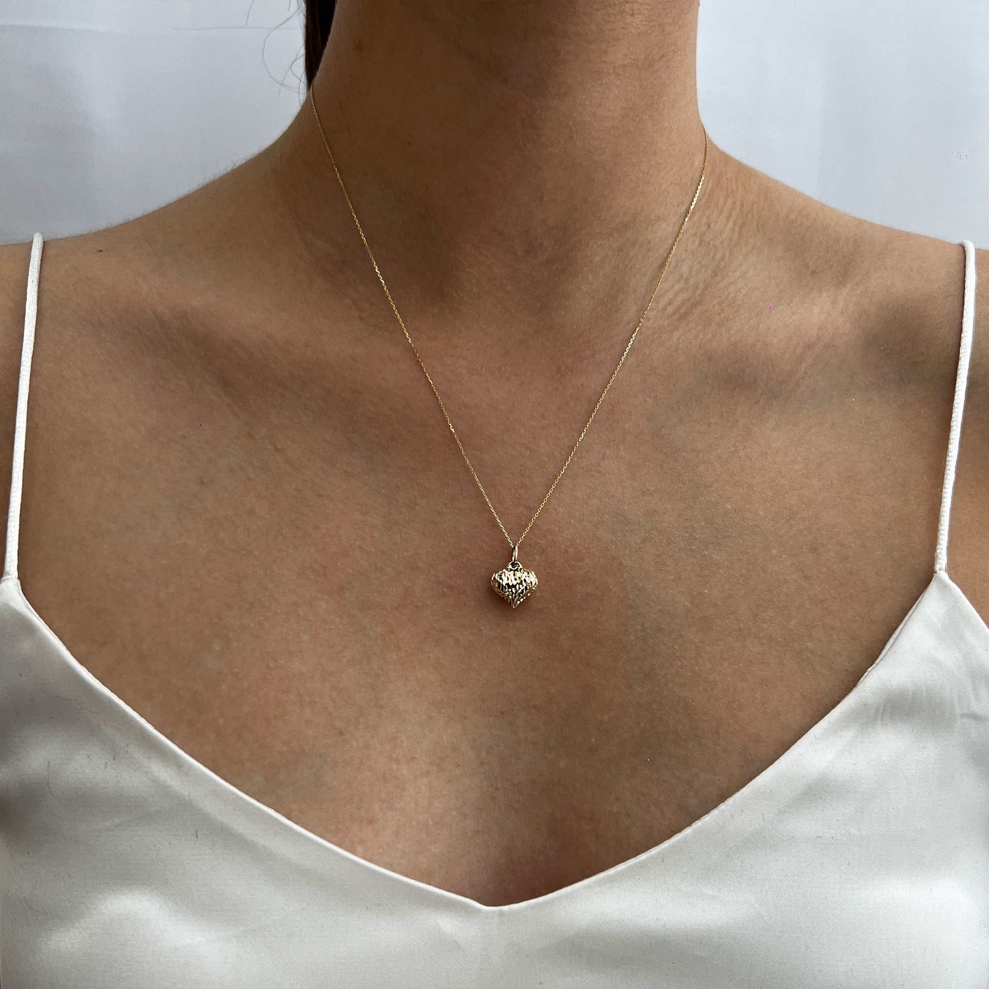 Hermoso Collar Gargantilla de Oro de 14 Kilates con Dije de Corazon con Doble Vista