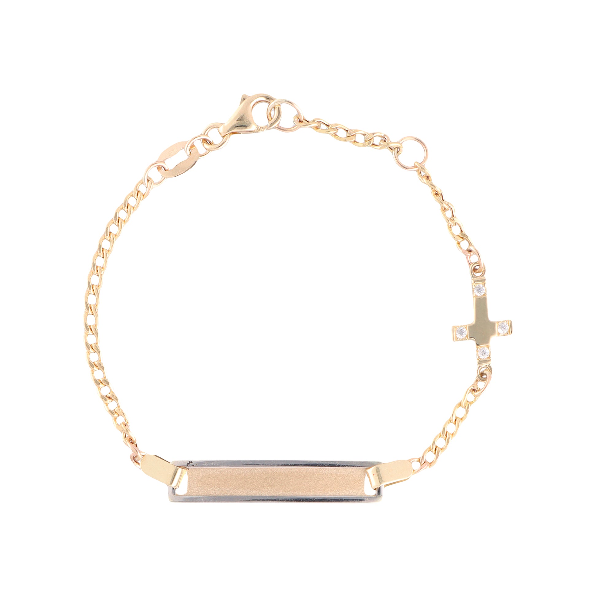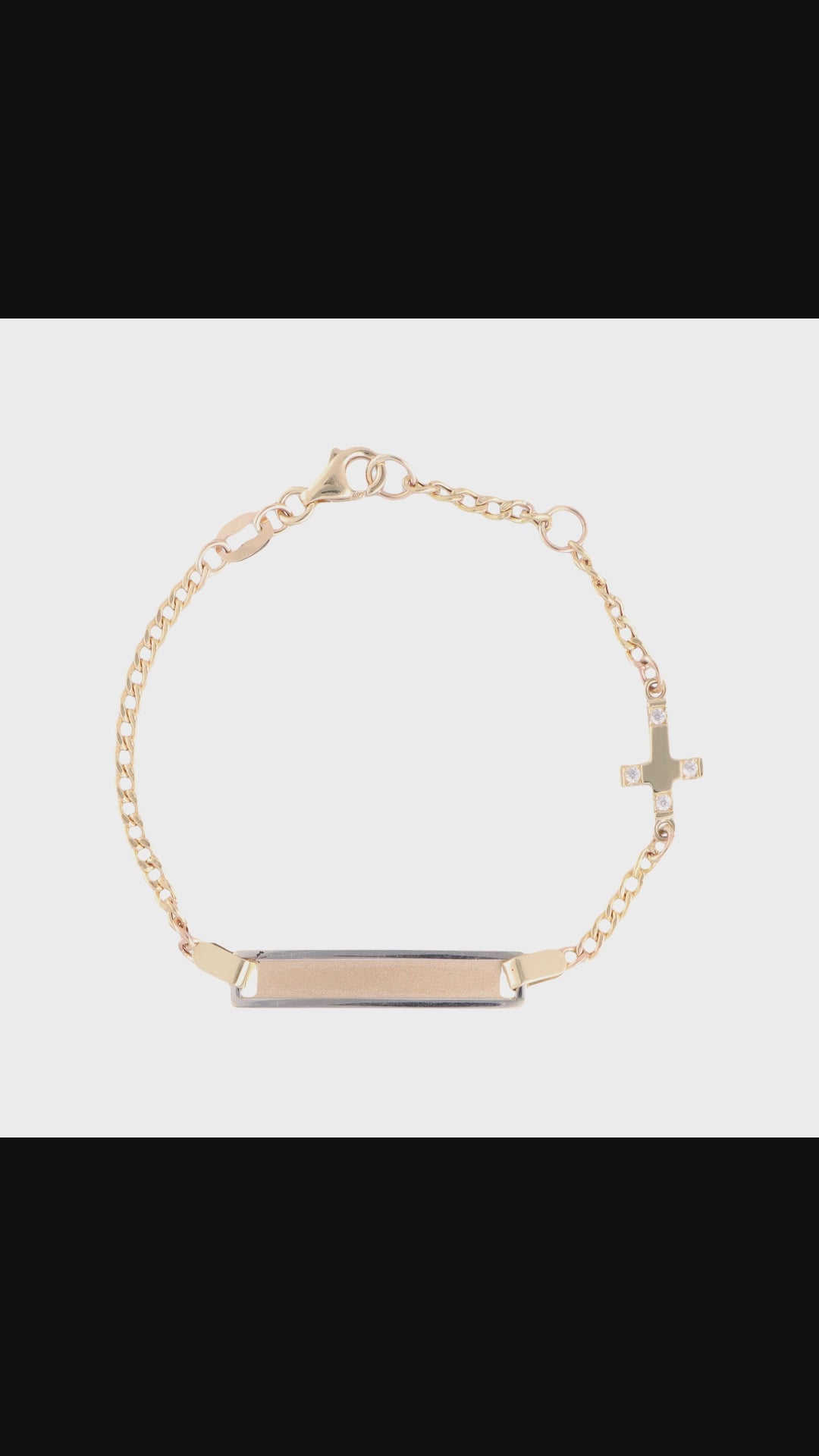 Esclava De Oro Sólido 10 Kilates Placa con Cruz 12-14 CM
